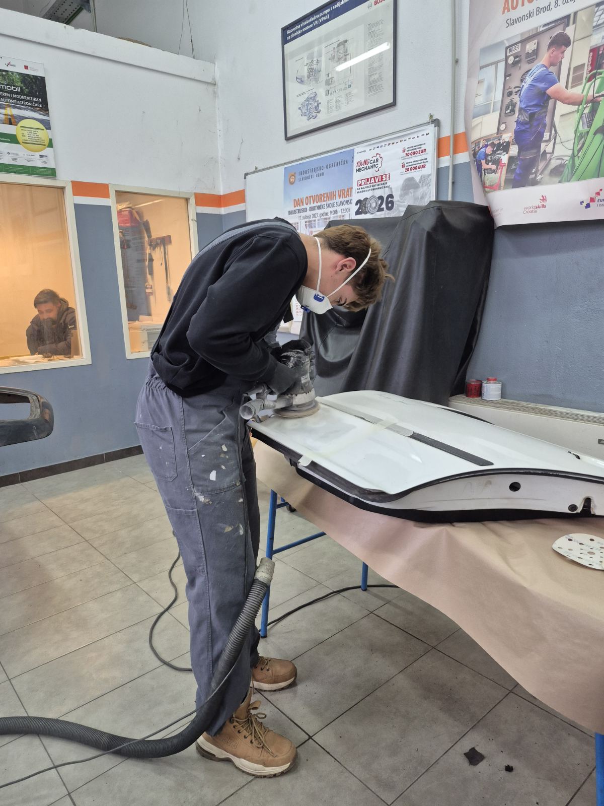 Danas, 21. siječnja 2026. u autolakirerskoj radionici kod stručnog učitelja Marka Žebčevića održano je školsko natjecanje u Tehnologiji autolakiranja. Sudjelovalo je četiri učenika 3.f razreda te je najviše znanja i vještina u svojoj struci pokazao učenik Josip Jurković. On će u svibnju sudjelovati na „Wordskillsu“ u Zagrebu na državnom natjecanju u ovoj disciplini. Mentorica je Marta Živatović, a Josipu sretno i hrabro u nove pobjede.